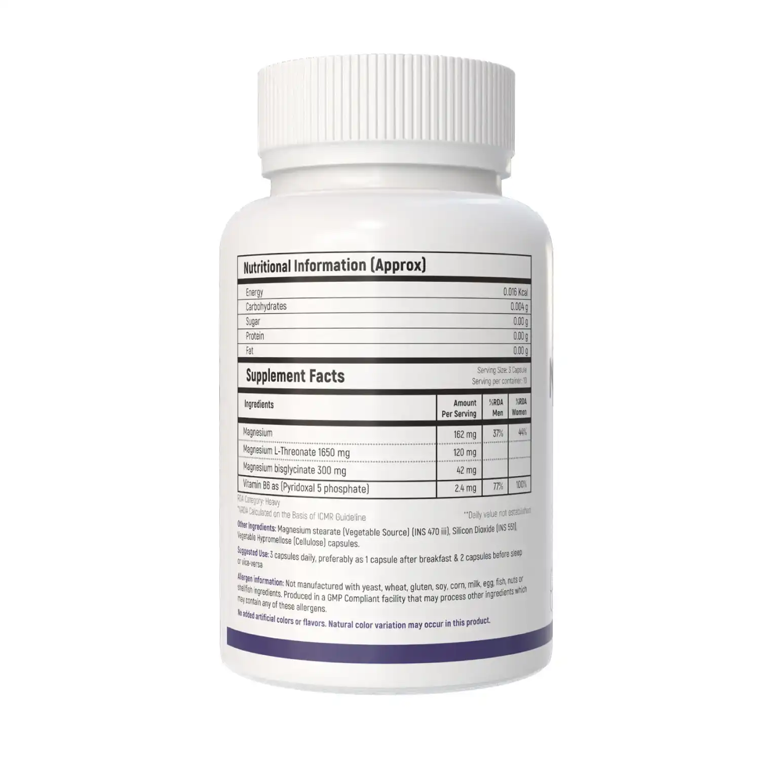 - Magnesium Bisglycinate: Supports muscle relaxation, nerve function, and stress balance.