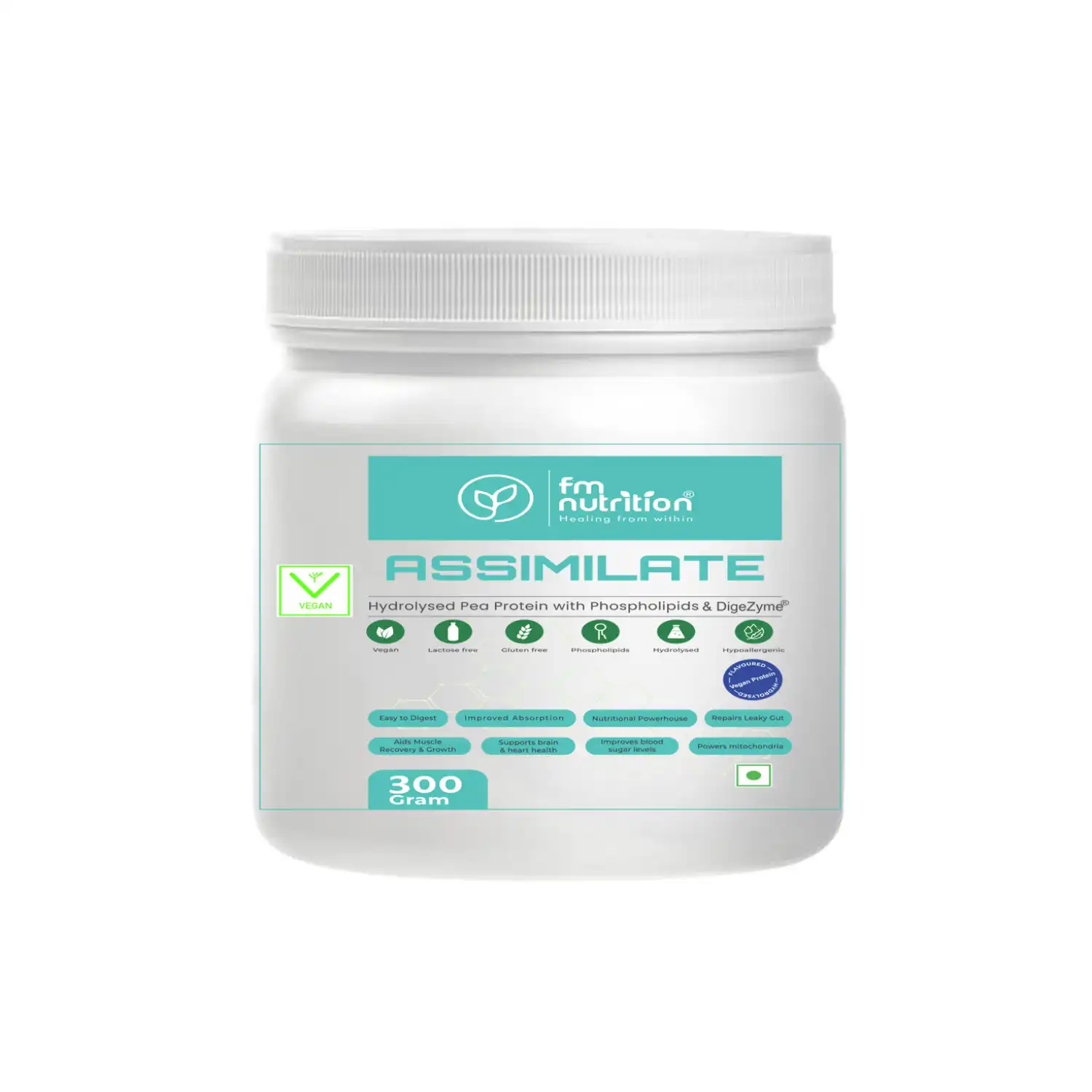 Assimilate Protein is 100% Natural & Plant-Based Crafted from Hydrolyzed Pea Protein and enriched with Phospholipids for superior quality and effectiveness.