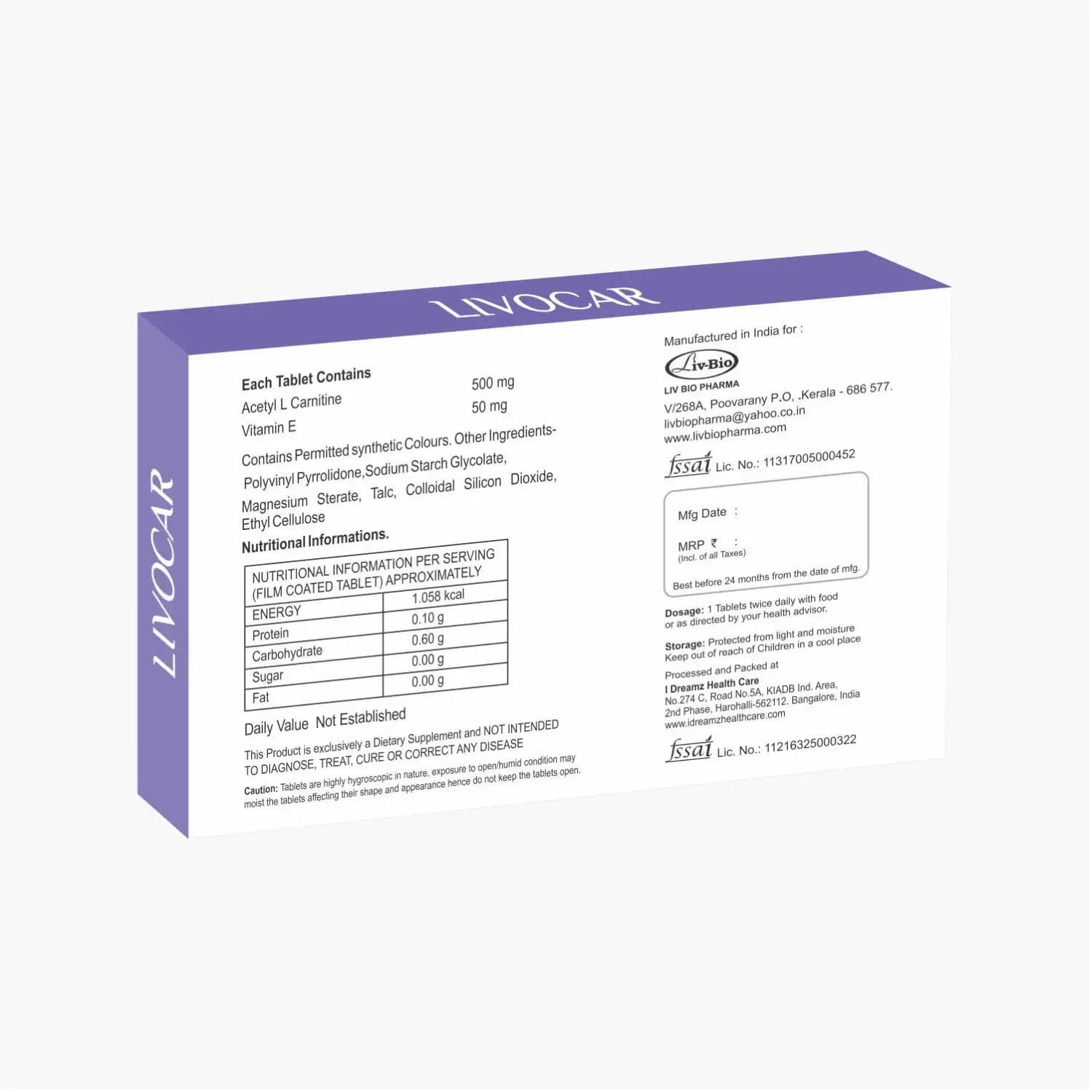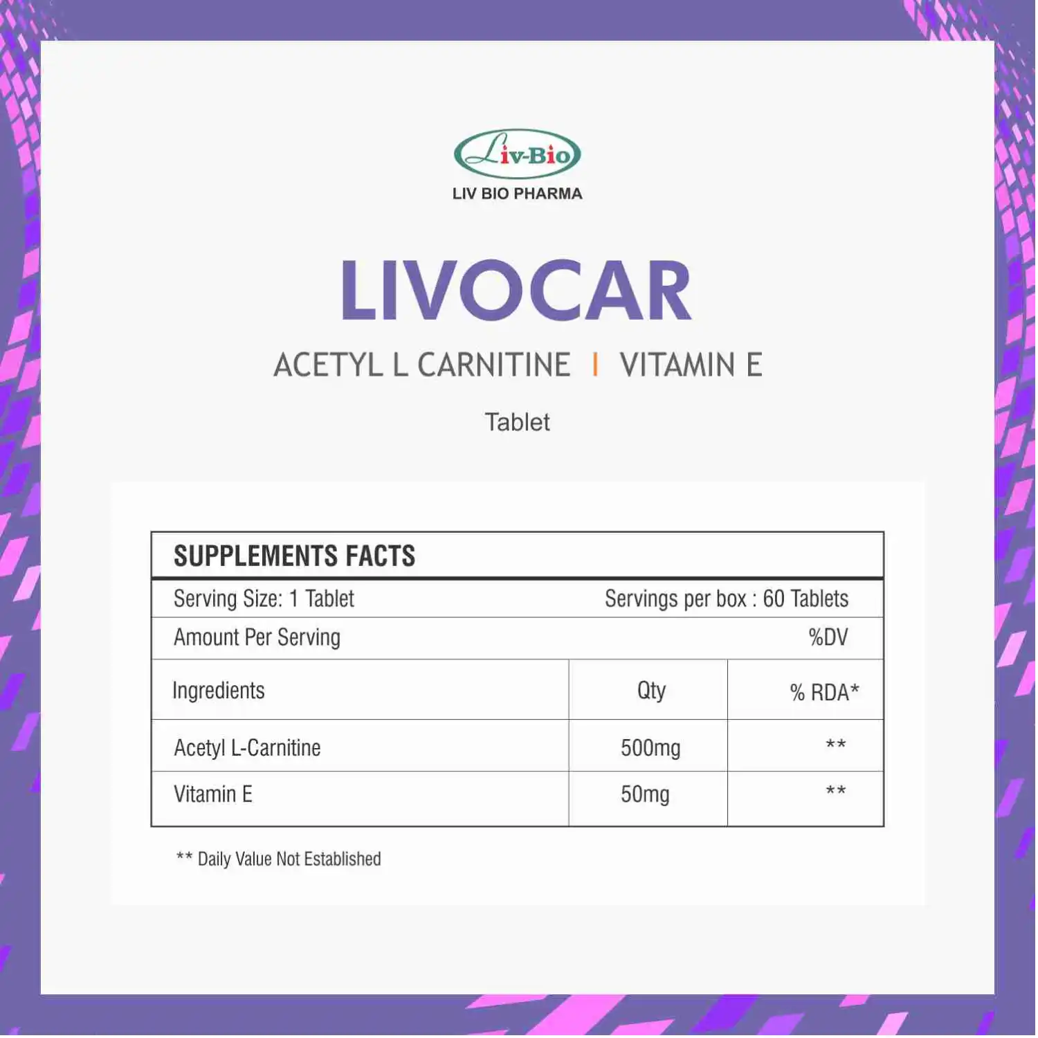 Livocar Acetyl-L-Carnitine (ALCAR) combines Acetyl-L-Carnitine with Vitamin E, making it a potent formula for cognitive health, nerve support, mood balance, and overall cellular energy. Beneficial for individuals with cognitive decline, neuropathy, low energy, and metabolic stress.