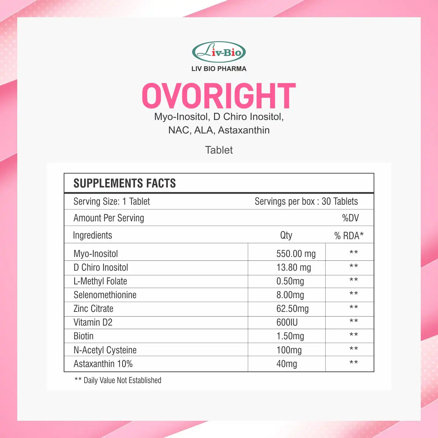 Livbio Ovoright is a scientifically formulated blend designed to restore hormonal balance, support ovarian health, and improve fertility outcomes in women with PCOS and PCOD. It contains Myo-Inositol and D-Chiro Inositol in the optimal physiological ratio of 40:1, the clinically validated combination for improving ovulation, insulin sensitivity, and overall reproductive function.