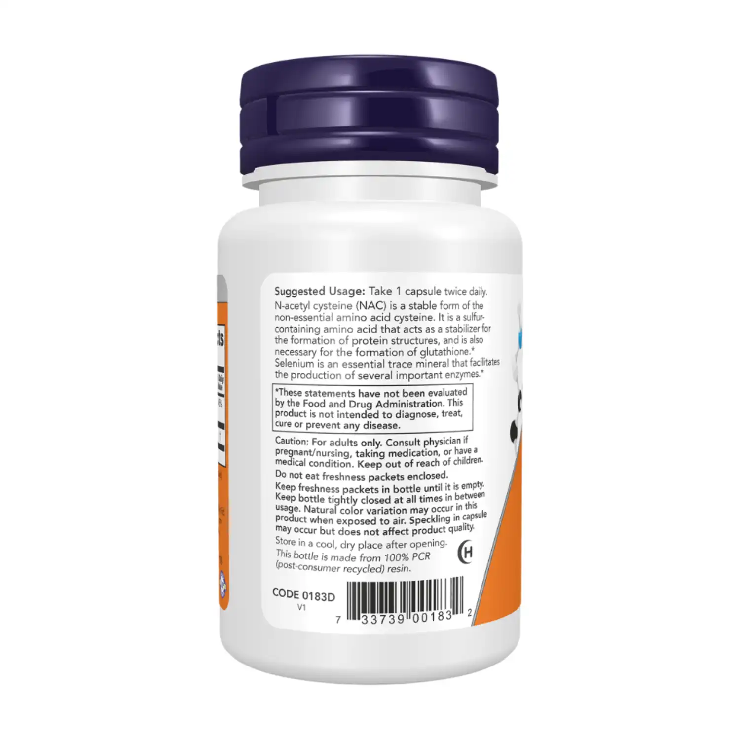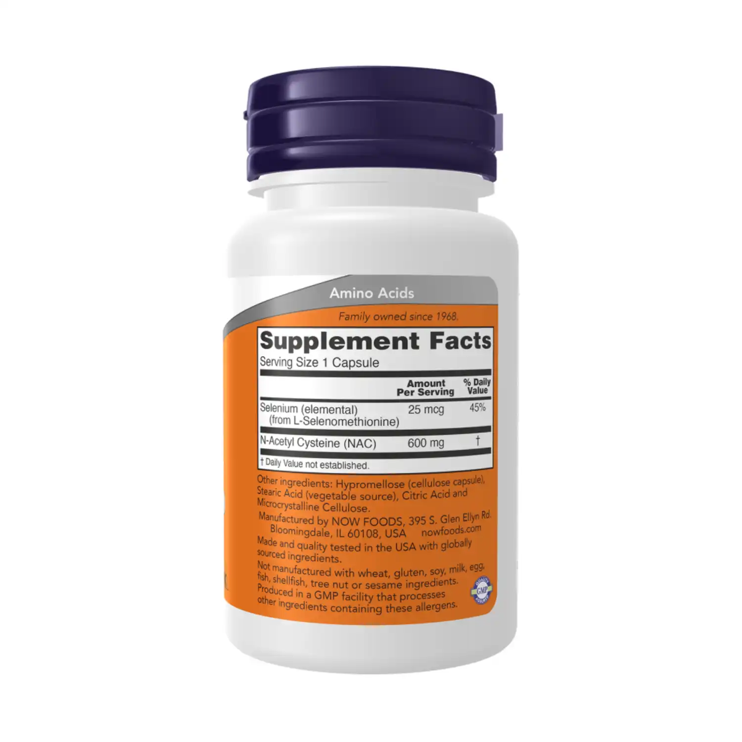 NOW® NAC 600 mg provides N-Acetyl-L-Cysteine (NAC), a stable and bioavailable form of the amino acid cysteine, along with selenium, an essential trace mineral. This formulation supports cellular antioxidant defense, immune health, glutathione production, and detoxification pathways, making it suitable for daily antioxidant and metabolic support.
