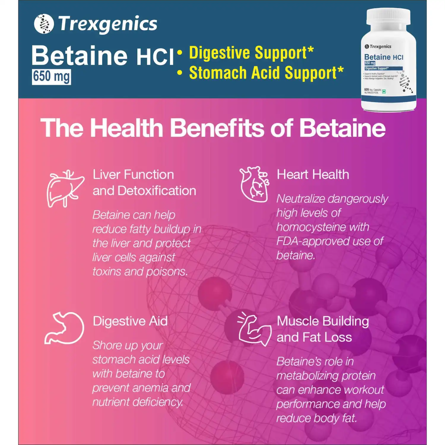 If you’re struggling with gas, bloating, constipation, acidity, and other digestive discomforts, Betaine HCL supplements can be a reliable ally. Unlike antacids that merely lower stomach acid levels temporarily, Betaine HCL helps boost stomach acid naturally. This restoration supports effective digestion, preventing undigested food from causing bloating and discomfort. By addressing low stomach acid levels, Betaine HCL tackles the root causes of digestive issues, offering lasting relief without the dependency on antacids.