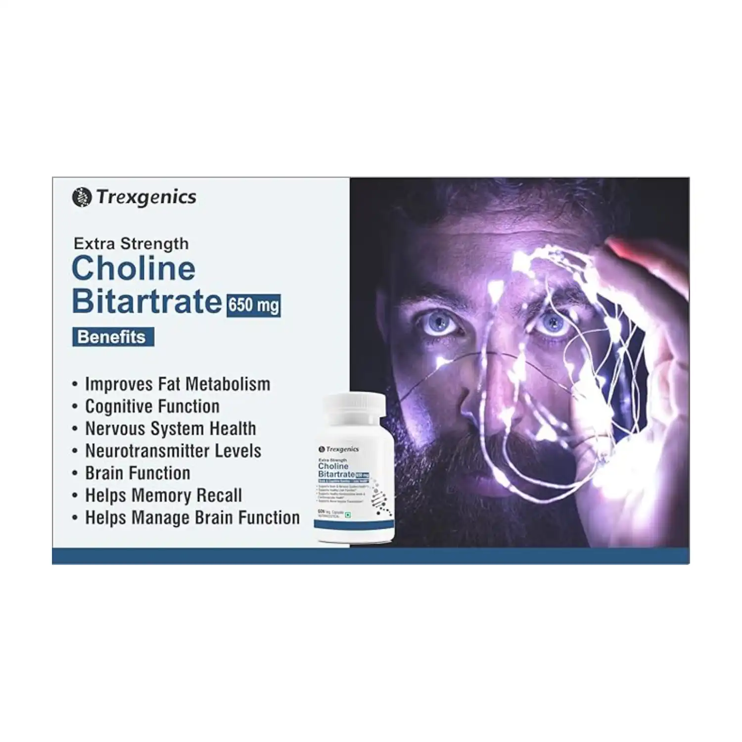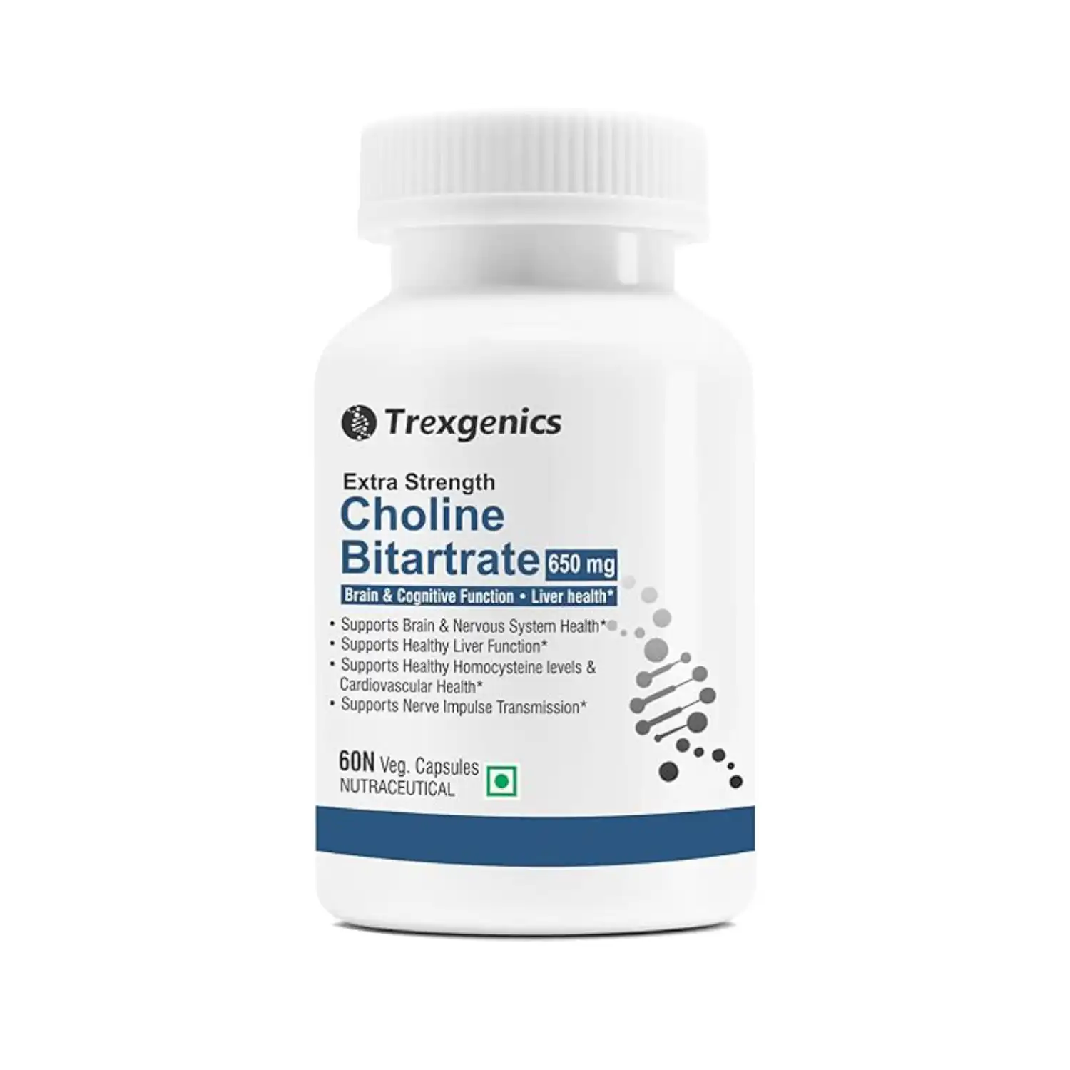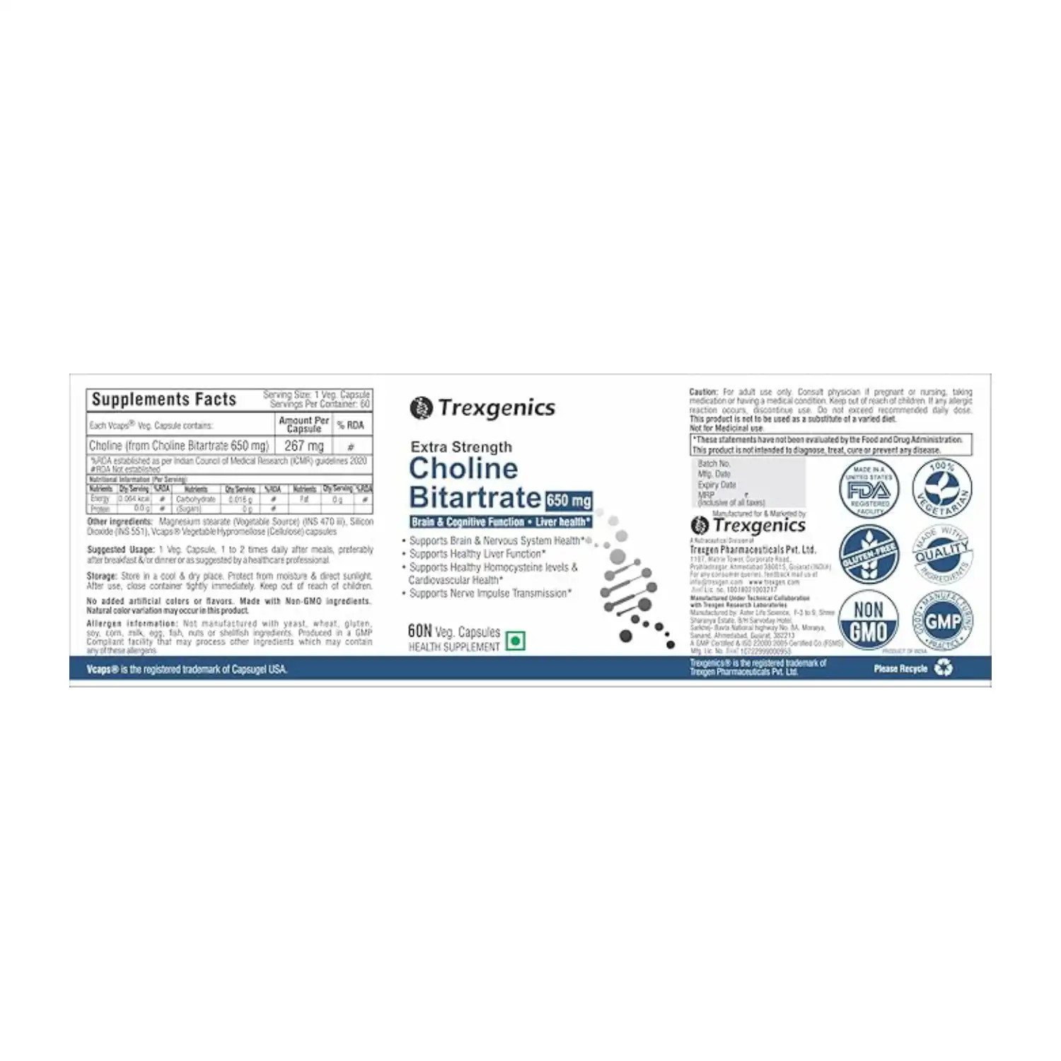 Trexgenics Extra Strength Choline Bitartrate 650mg is a premium quality supplement that is important for healthy liver function, brain and nervous system health, cardiovascular health and also supports fat metabolism.