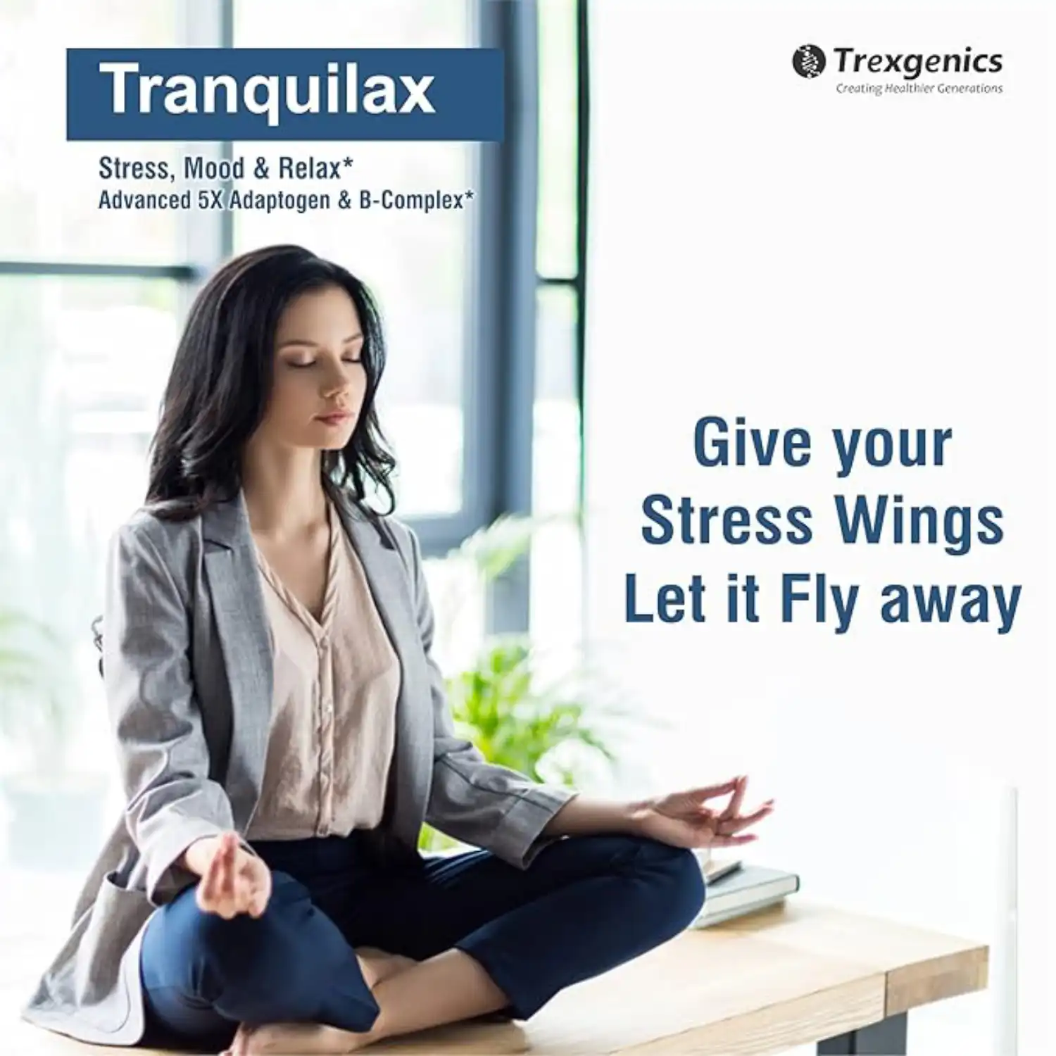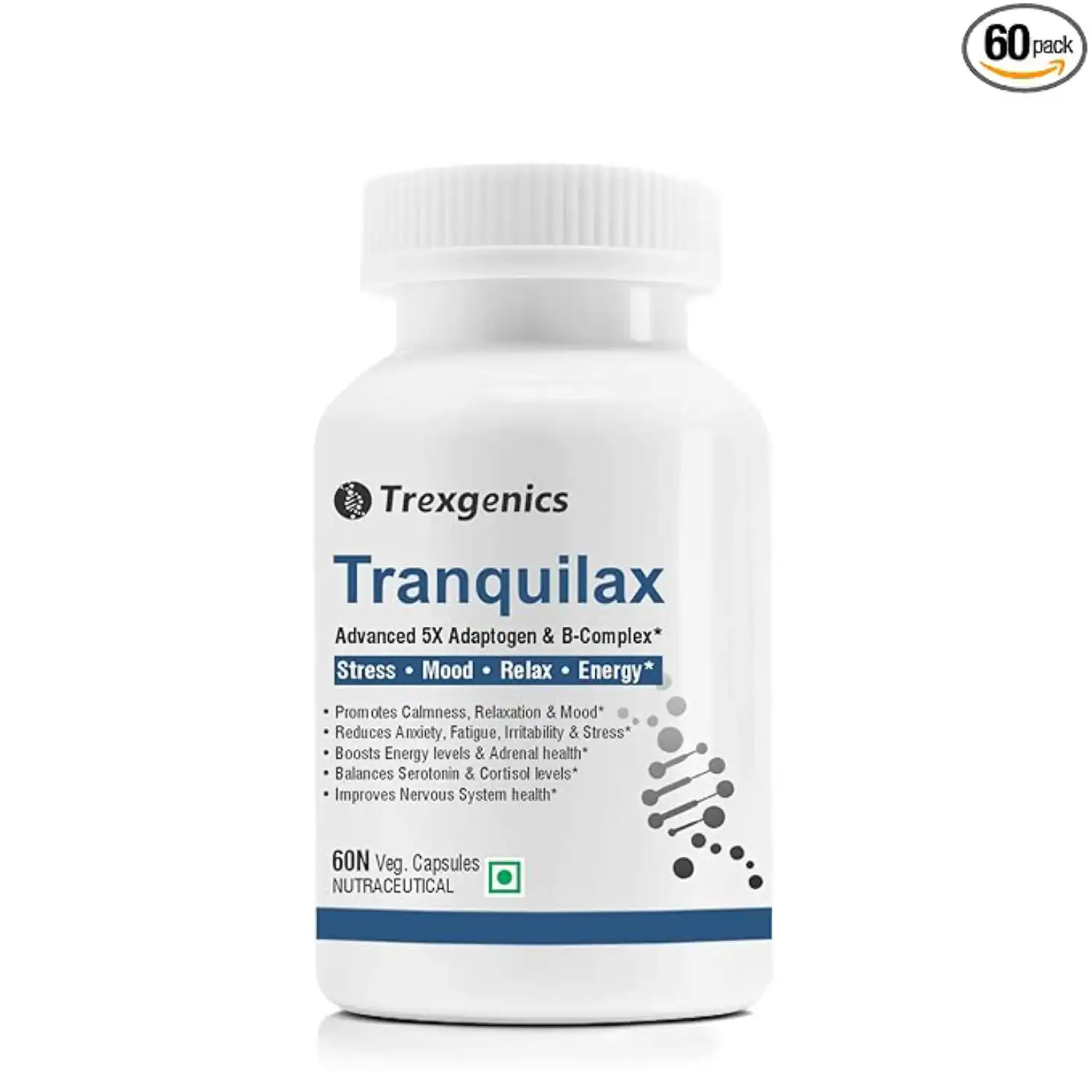 Trexgenics Tranquilax is a premium stress-support formula combining 5 adaptogenic herbs with a full-spectrum B-complex to combat stress effectively. Scientifically crafted with standardized adaptogenic herbs, it works synergistically to balance the nervous system, boost serotonin levels, and promote relaxation and emotional well-being. Ideal for managing stress while supporting mental and physical resilience.