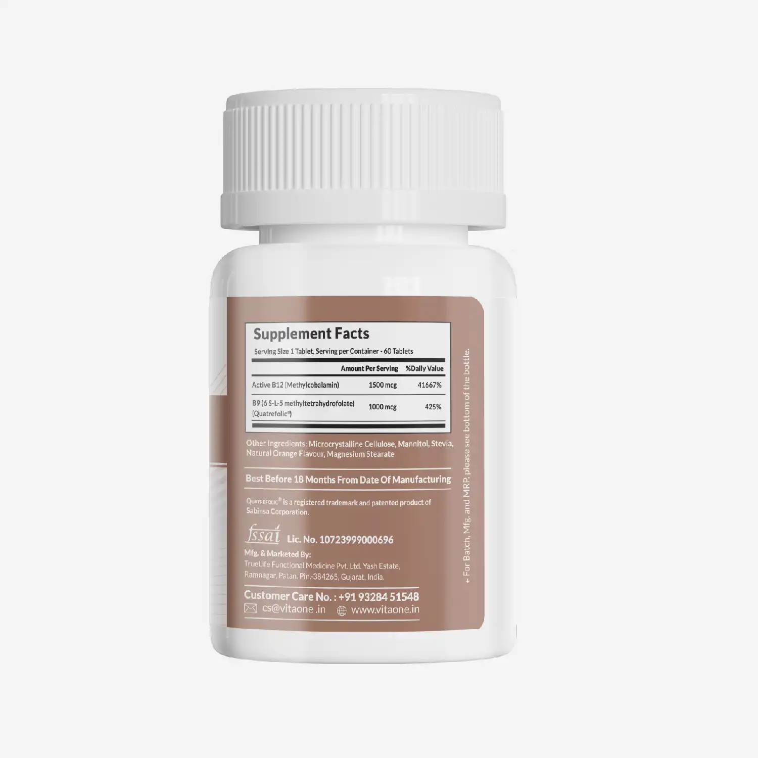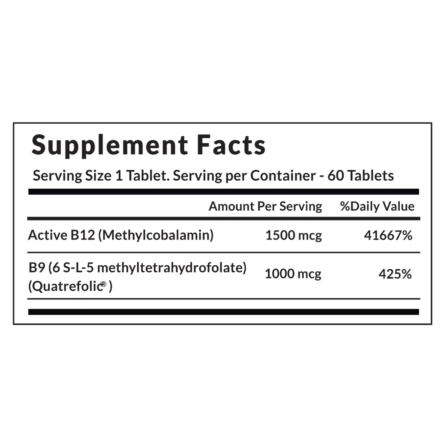 VitaOne’s Active Folate B12 combines the most active, stable, and highly bioavailable form of Vitamin B9 folate (Quatrefolic® brand) and Vitamin B12 (Methyl Cobalamin).