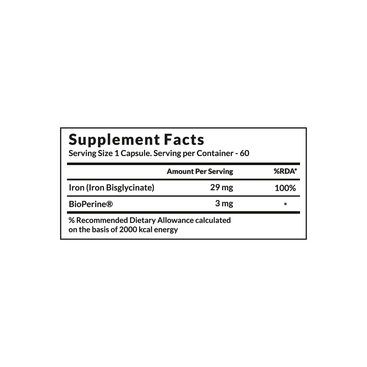 • Gentle on the Stomach: Iron bisglycinate is a chelated form known for its high bioavailability and minimal gastrointestinal side effects.