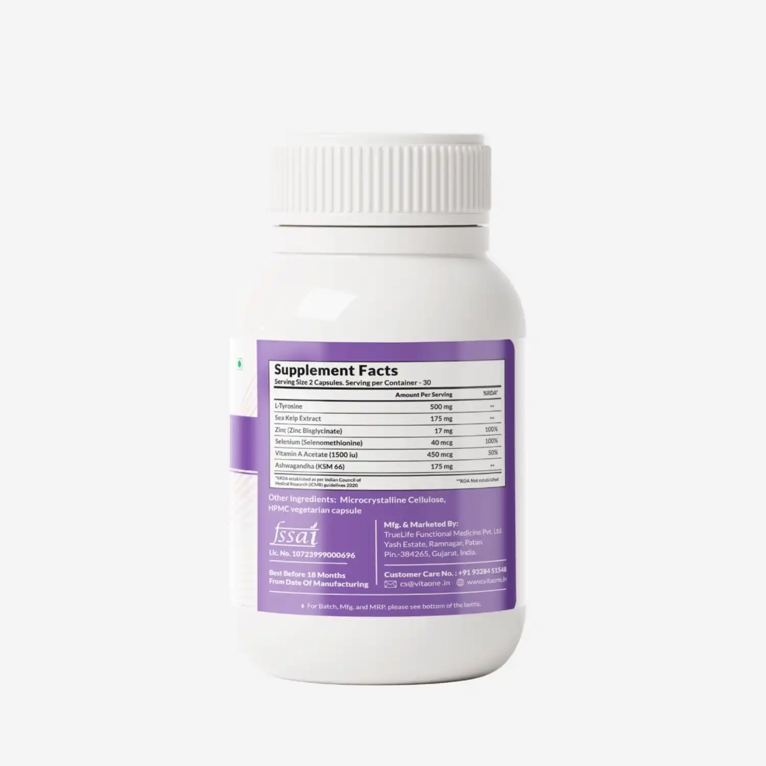 VitaOne’s Thyroid Support offers complete nutritional support for thyroid function. It combines clinically researched nutrients like Selenium, Ashwagandha KSM-66, Zinc, L-Tyrosine, Sea Kelp (Iodine), and Vitamin A to naturally support thyroid hormone balance, improve metabolism, and reduce autoimmune thyroid antibodies.