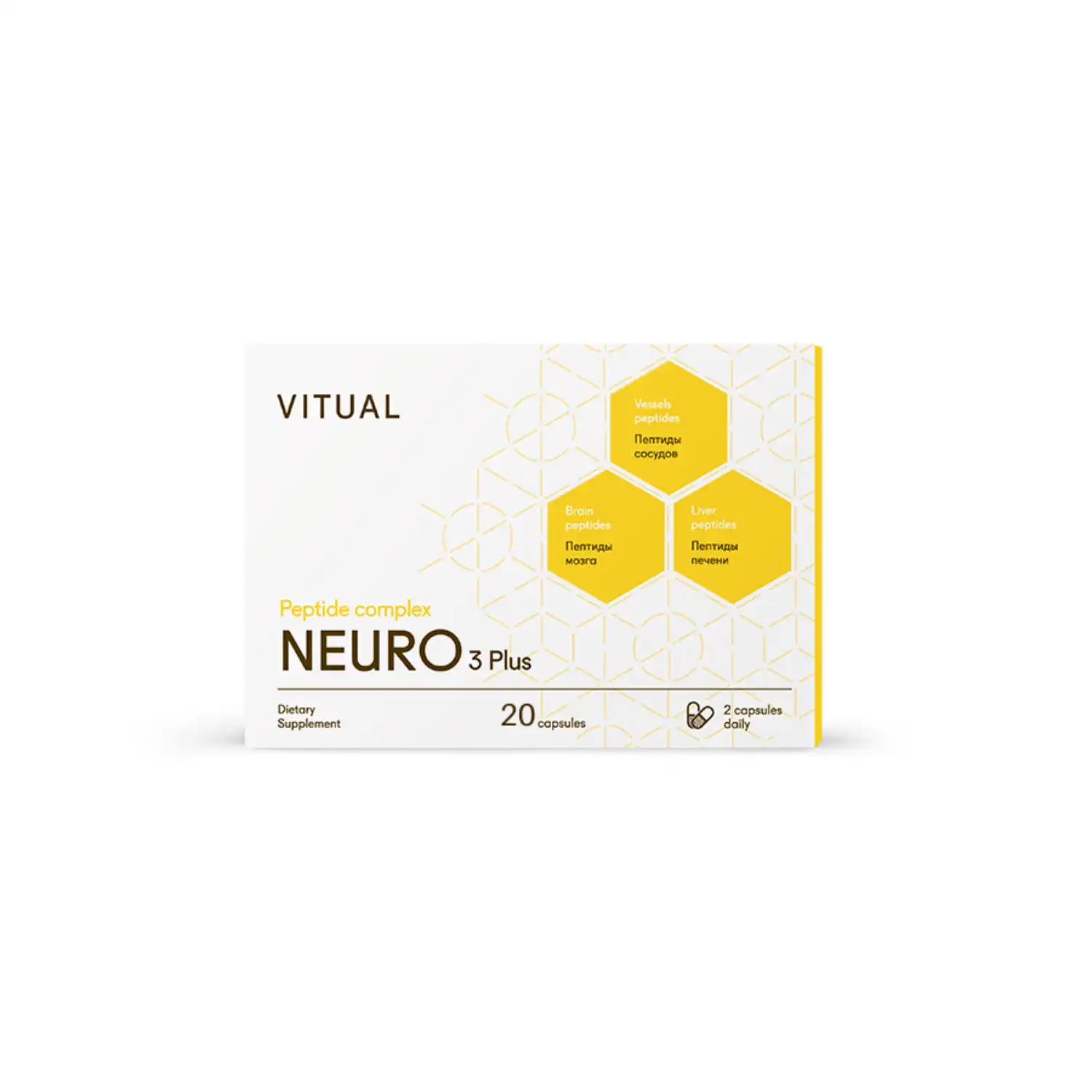 Neuro 3 Plus is a peptide therapy complex which is a unique blend of natural polypeptides designed to restores cognitive function and nervous system health, supports hepatic detoxification and overall liver function, and maximizes vascular integrity and supports hearth health. It combines three biologically active natural peptides namely Cerluten, Svetinorm, and Ventfort.