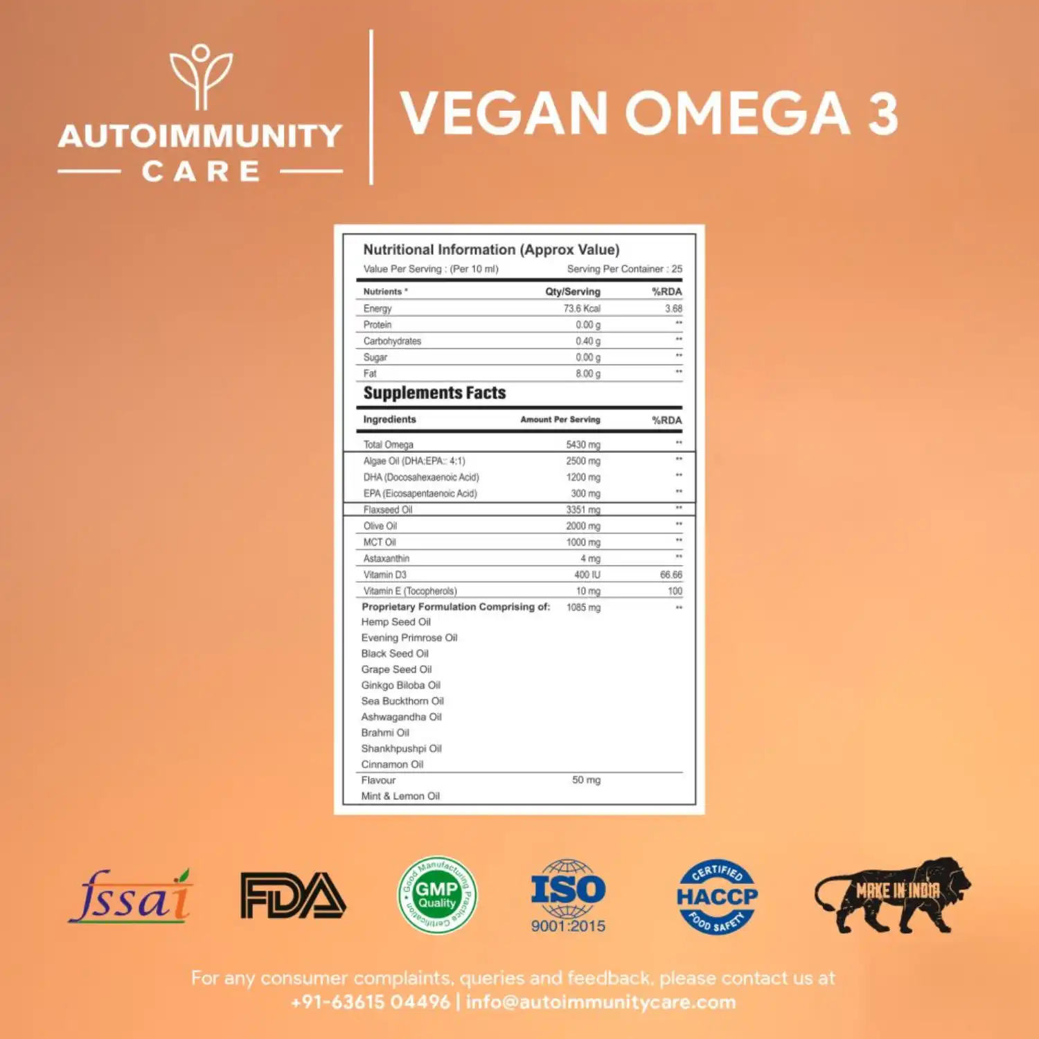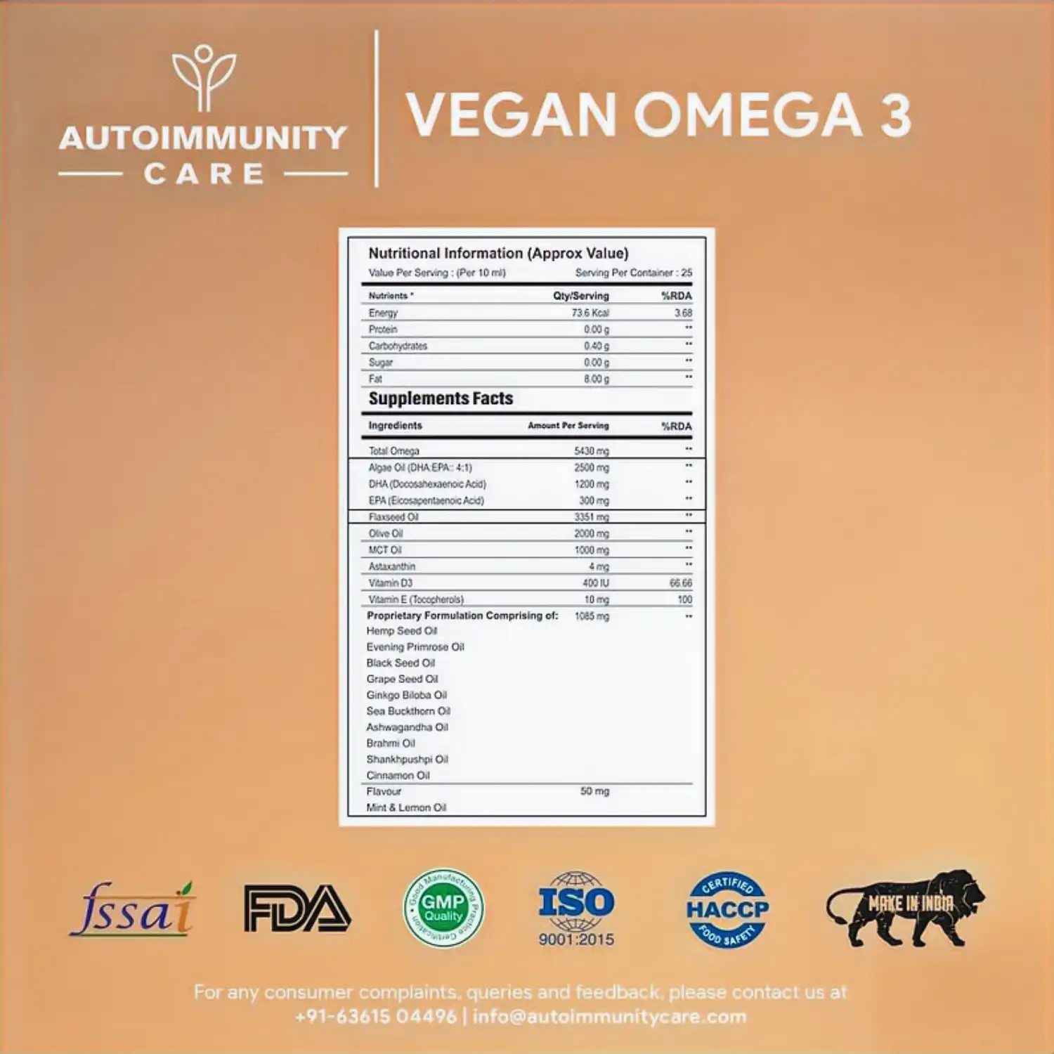 Autoimmunity Care Vegan Omega 3 Oil is derived from plant-based sources, making it suitable for vegetarians and vegans. Traditional fish oil supplements are derived from fish, which may not be suitable for those following a plant-based diet. Autoimmunity Care Vegan Omega 3 Oil offers a vegan-friendly alternative with similar benefits.