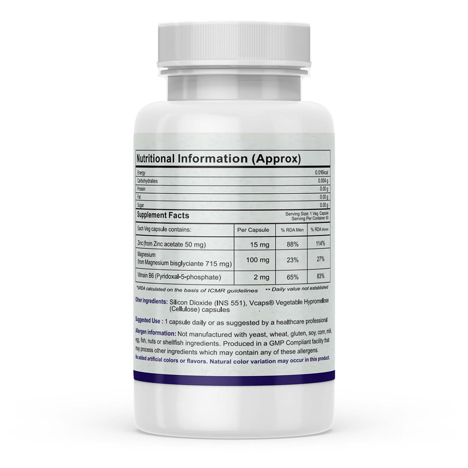 Blend of high-quality forms of Magnesium and Zinc, along with active Vitamin B6 in the form of Pyridoxal-5-phosphate for enhanced bioavailability and effectiveness.