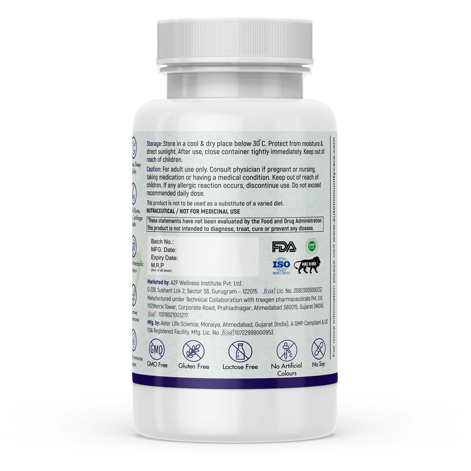 - Magnesium Bisglycinate: Supports sleep, calmness, relaxation, and healthy muscles.