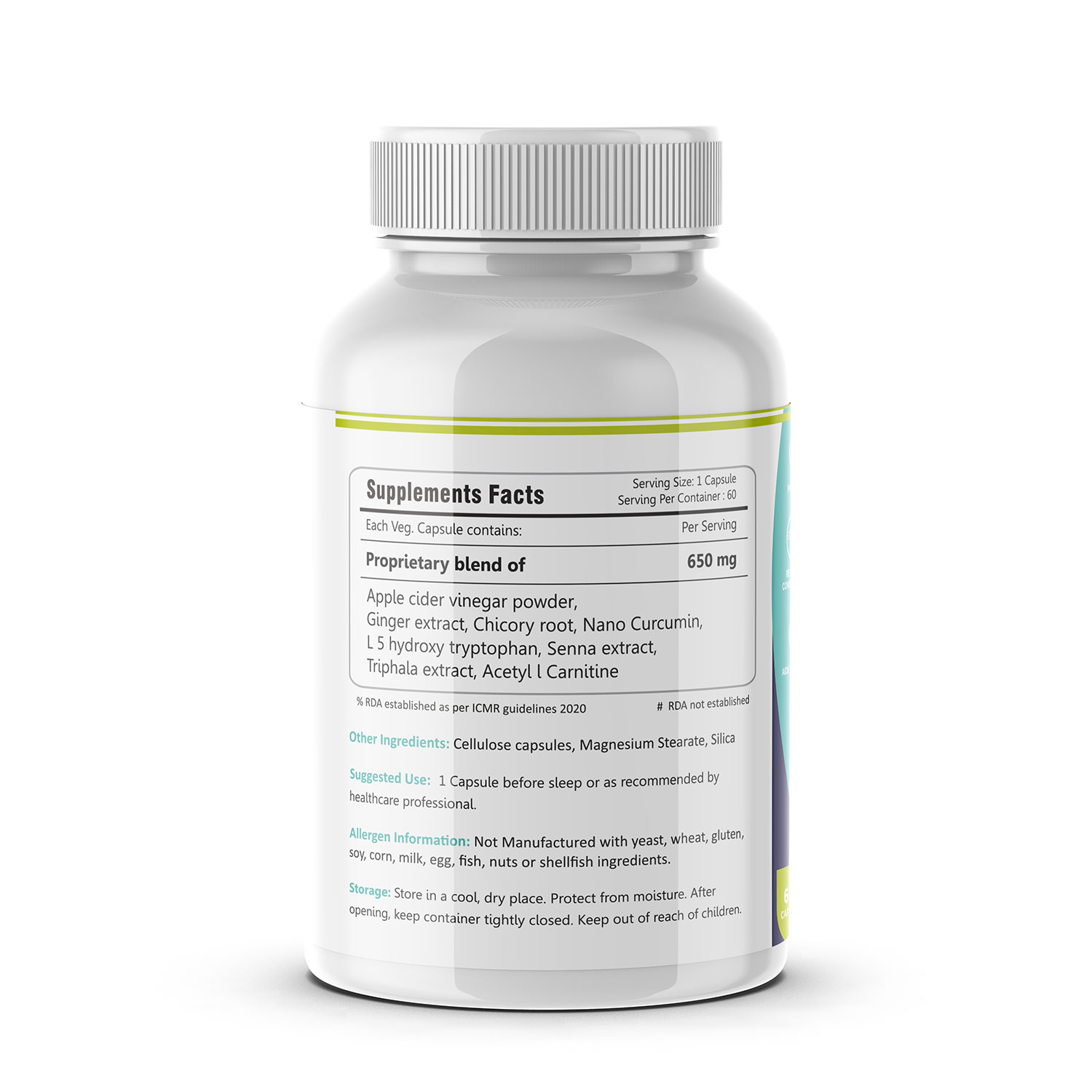 - Triphala extract: Promote regular bowel movement & supports detoxification process.