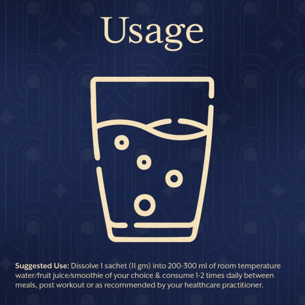 1 sachet daily mixed along with water or as directed by your healthcare professional.