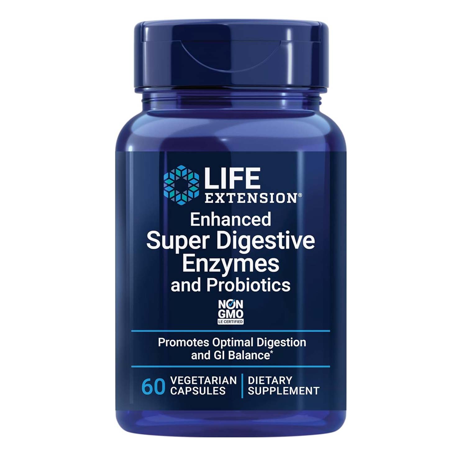 Life Extension Enhanced Super Digestive Enzymes & Probiotics contains 10 vegetarian-friendly enzymes and the probiotic B. Coagulans to support GI balance, break down plant-based diets, and digest macro-nutrients like protein, dairy, and fat.