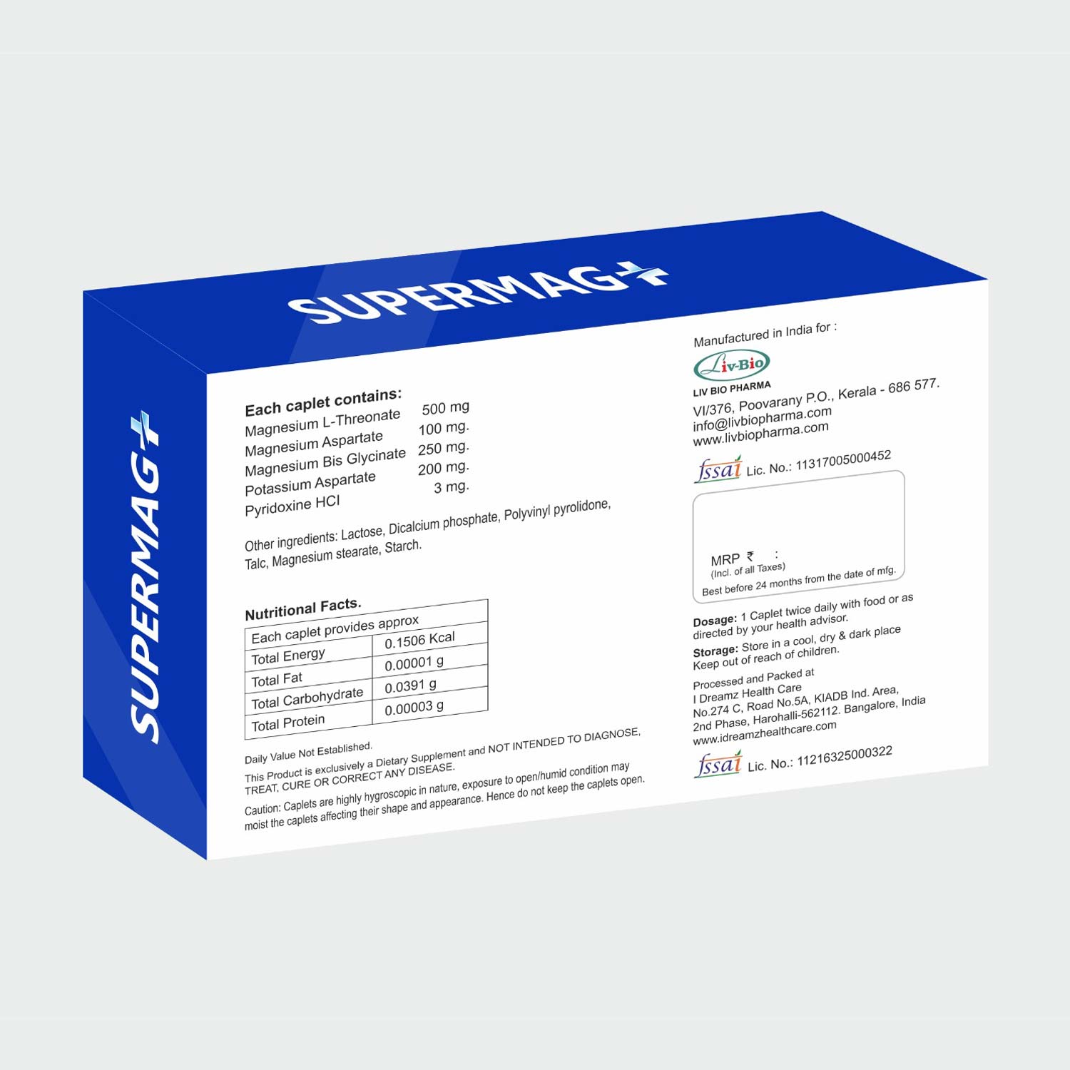 LivBio SuperMag Plus, Magnesium Supplement, 30 Veg Capsules