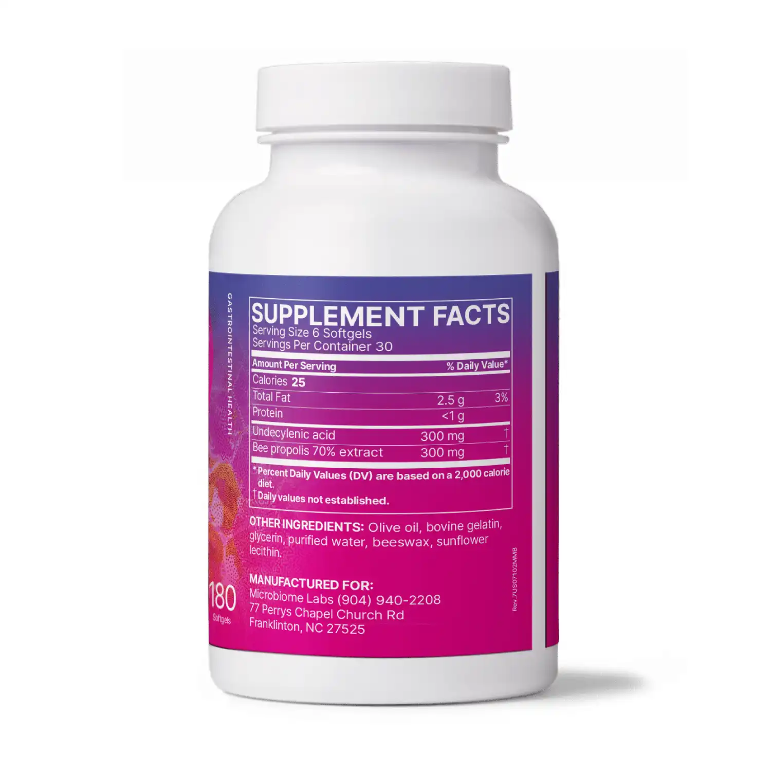 - Undecylenic Acid: An organic fatty acid derived from castor bean oil that supports a healthy balance of yeast in the gut.
