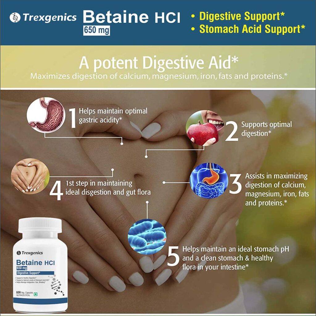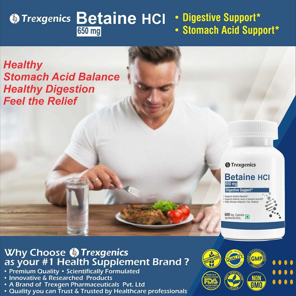 If you’re struggling with gas, bloating, constipation, acidity, and other digestive discomforts, Betaine HCL supplements can be a reliable ally. Unlike antacids that merely lower stomach acid levels temporarily, Betaine HCL helps boost stomach acid naturally. This restoration supports effective digestion, preventing undigested food from causing bloating and discomfort. By addressing low stomach acid levels, Betaine HCL tackles the root causes of digestive issues, offering lasting relief without the dependency on antacids.