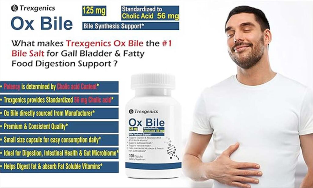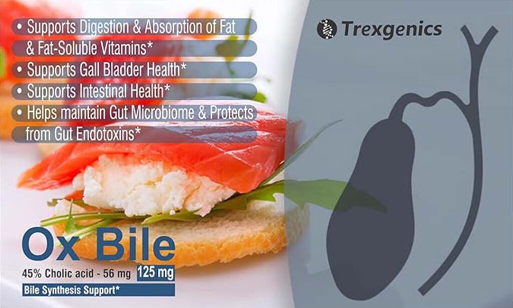 Trexgenics Ox Bile 125 mg is a digestive health supplement designed to support fat digestion and nutrient absorption. With purified ox bile extract, it aids in maintaining healthy bile levels, improving digestion, and supporting liver and gallbladder function. Ideal for individuals with bile deficiencies or those without a gallbladder.