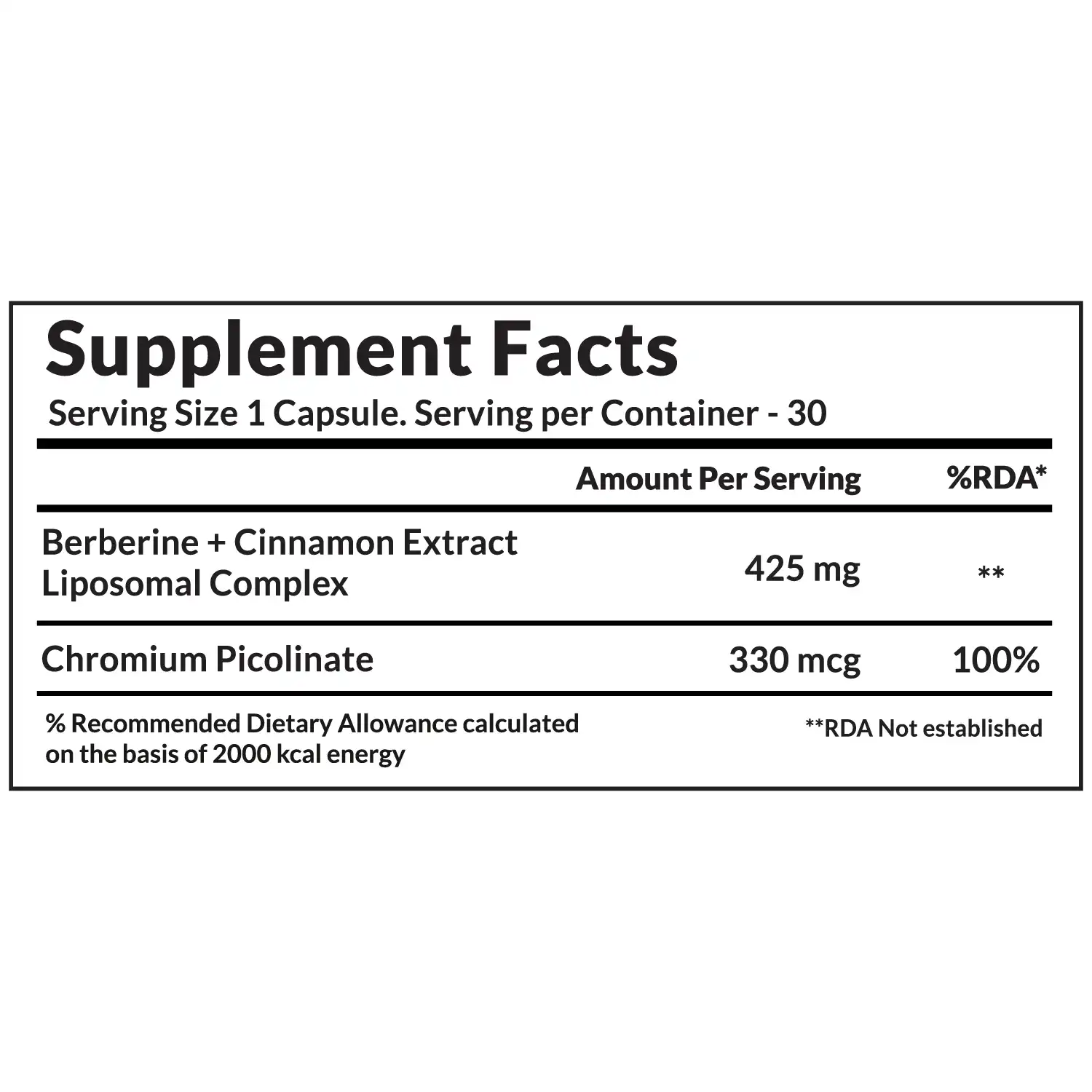 An effective and bioavailable metabolic support formula powered by liposomal berberine, in addition with cinnamon, chromium, and black pepper extract for better absorption and clinical efficacy. Naturally supports healthy liver function, intestinal microbiota, insulin response, blood sugar, cholesterol, and overall gut health.
